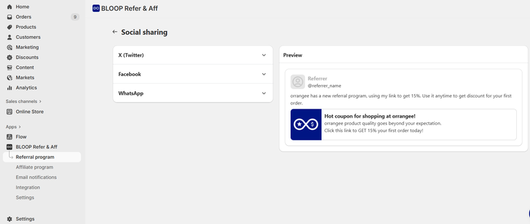 Pro Tip: If you want to combine referral and affiliate campaigns in one system, Bloop Referrals & Affiliates lets you run both side-by-side, perfect for Shopify stores that work with customers, influencers, or partners.
